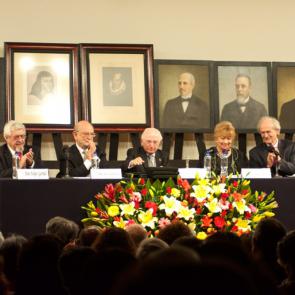 El discurso de Juliana González se centró en la capacidad humana del lenguaje que le otorga de mayor responsabilidad ética respecto a la realidad que lo circunda; el del historiador Jean Meyer sobre la dicotomía nacionalismo/universalismo, y José Sarukhán habló de la importancia de la divulgación de la ciencia y manifestó su disposición en apoyar a la corporación con las consultas relacionadas con esta área del conocimiento.