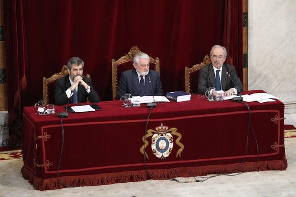 A continuación ha tomado la palabra el presidente del TS y del CGPJ. Carlos Lesmes ha dicho que el Diccionario del español jurídico "aspira a fortalecer el uso preciso del lenguaje, enfocando sus conceptos bajo el prisma de la sencillez descriptiva, como garantía de la más adecuada comprensión de los derechos". Se trata de un diccionario verdaderamente monumental, ha continuado Lesmes, "tanto por el número de entradas como por su rigor. Por tanto, exhaustividad y claridad se dan la mano en esta obra jurídica y lingüística". El lenguaje es una expresión de la libertad, ha concluido Lesmes, para quien "la definición objetiva genera seguridad jurídica, previsibilidad y comprensión".